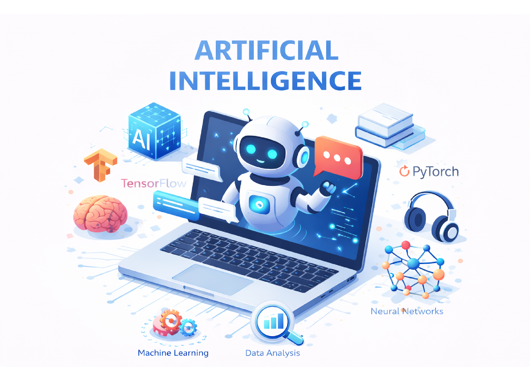 This course covers machine learning algorithms, deep learning frameworks (TensorFlow, PyTorch), AI-powered applications, and natural language processing (NLP). Students will work on real-world AI projects, data modeling, and automation tools to gain hands-on experience.